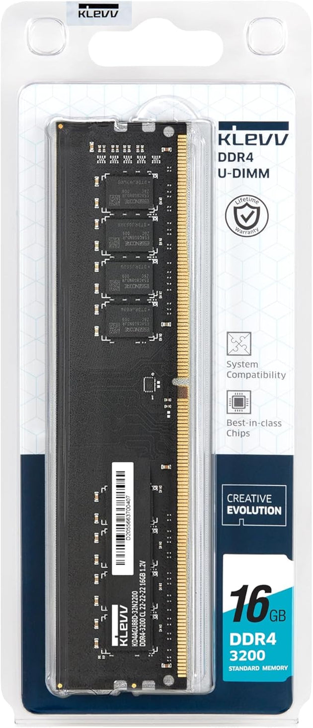 KLEVV 3200MHz DDR4 Desktop Memory DDR4 16 GB (Dual Channel) PC Ram (KD4AGUA80-32N220E)