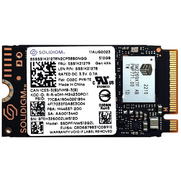 Solidigm 512 GB SSD, PCI Express 4.0 x4 (NVMe), 4125 / 3325 MB/s